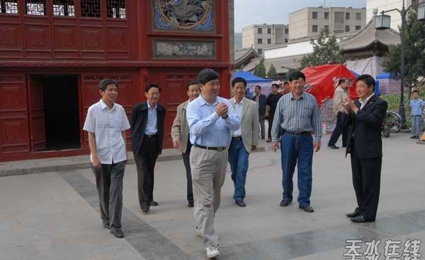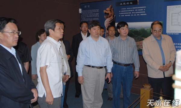 5月23日早上,調(diào)研組一行在省文化廳廳長(zhǎng)邵明、省文物局副局長(zhǎng)楊惠福、廖北遠(yuǎn)、馬玉萍、省考古研究所副所長(zhǎng)王輝、天水市市長(zhǎng)李文卿、副市長(zhǎng)郭奇若、市文化文物出版局局長(zhǎng)蘇定武等領(lǐng)導(dǎo)的陪同下,來(lái)到市博物館、伏羲廟、南宅子調(diào)研此次地震中館藏文物、古建文物的受損情況。并聽(tīng)取了博物館館長(zhǎng)李寧民對(duì)館藏文物和古建受損情況及震后所采取的應(yīng)急預(yù)防措施的匯報(bào)。