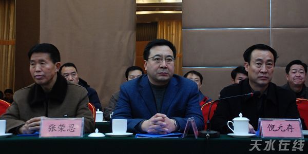 天水日報(bào)社黨委書記、社長張智明講話,天水日報(bào)社副社長、總編輯倪元存主持總結(jié)分析會。