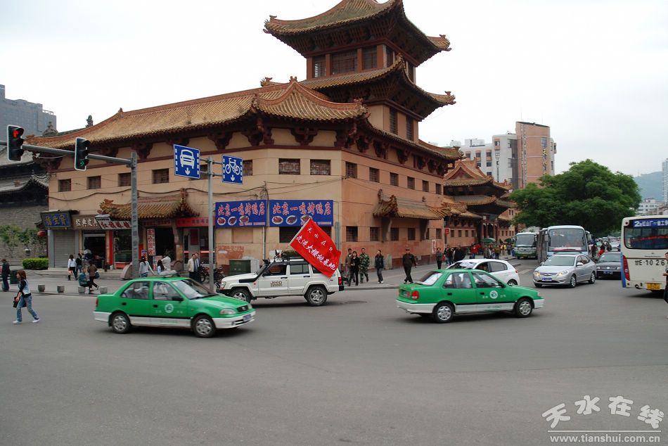 車隊(duì)經(jīng)過市中心廣場(chǎng)
