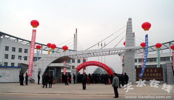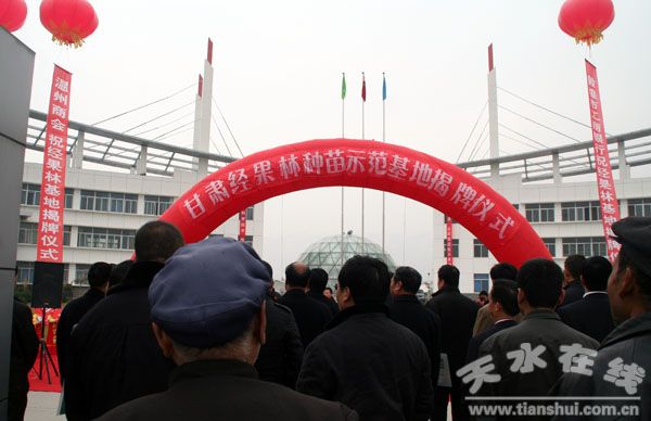 12月6日,甘肅經(jīng)果林種苗示范基地在天水農(nóng)業(yè)高新技術(shù)示范園區(qū)舉行揭牌儀式。甘肅省工信委副主任溫隆家,甘肅省林業(yè)廳副廳長(zhǎng)趙建林以及天水市人大常委會(huì)副主任韓一兵、副市長(zhǎng)趙衛(wèi)東、市政協(xié)副主席楊發(fā)元出席揭牌儀式。
