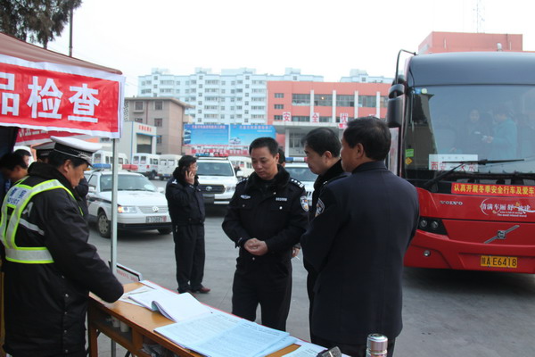 檢查組先后深入316國(guó)道武山縣和甘谷縣交警春運(yùn)服務(wù)站,秦州區(qū)天嘉運(yùn)輸集團(tuán)公司天水客運(yùn)總站、西湖嘴車站、南湖車站,麥積區(qū)客運(yùn)站、馬跑泉吳家崖收費(fèi)站交警春運(yùn)檢查服務(wù)宣傳點(diǎn),305省道清水縣和張家川縣交警春運(yùn)服務(wù)站等地及張家川縣交警大隊(duì)和清水縣交警大隊(duì),對(duì)基層交警大隊(duì)各項(xiàng)春運(yùn)道路交通管理工作、治理公路“三亂”、開(kāi)展公路客運(yùn)交通安全隱患排查整治、建立健全嚴(yán)查酒后駕駛長(zhǎng)效工作機(jī)制、嚴(yán)重交通違法行為執(zhí)行“五個(gè)一律”處罰標(biāo)準(zhǔn)、交警信息平臺(tái)使用等工作情況進(jìn)行了檢查和指導(dǎo),對(duì)春運(yùn)交通安全服務(wù)站的執(zhí)勤民警進(jìn)行了慰問(wèn),并參加了1月30日在天嘉運(yùn)輸集團(tuán)公司院內(nèi)舉辦的天水市2010年春運(yùn)暨“文明交通行動(dòng)計(jì)劃”啟動(dòng)儀式。
