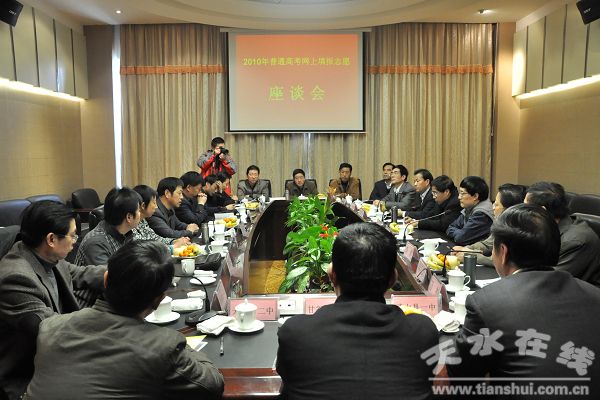 3月2日上午,省招委會副主任、省教育廳副廳長孫杰帶領(lǐng)省教育廳副巡視員程耀榮,省招辦主任王德安,省招辦書記陳漢忠,省招辦副主任李向葵,在天水市委常委、副市長郭奇若和天水市教育局局長李淳、黨委書記萬杰、副局長范具福、市招考辦主任茍軍林的陪同下,就2010年普通高考網(wǎng)上填報志愿工作進(jìn)行調(diào)研,并召開了座談會。市、縣區(qū)招生辦主任和部分中學(xué)校長參加了座談會。