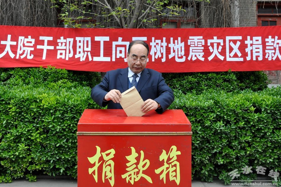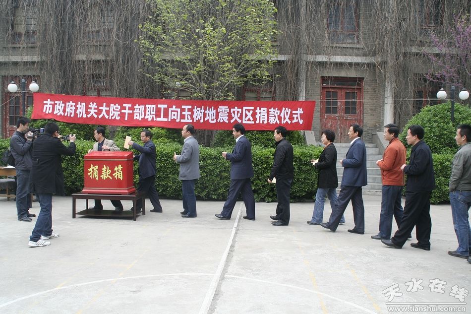 4月19日上午,天水市政府機關大院干部職工向玉樹地震災區(qū)捐款。