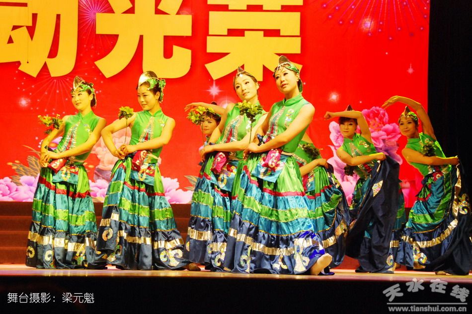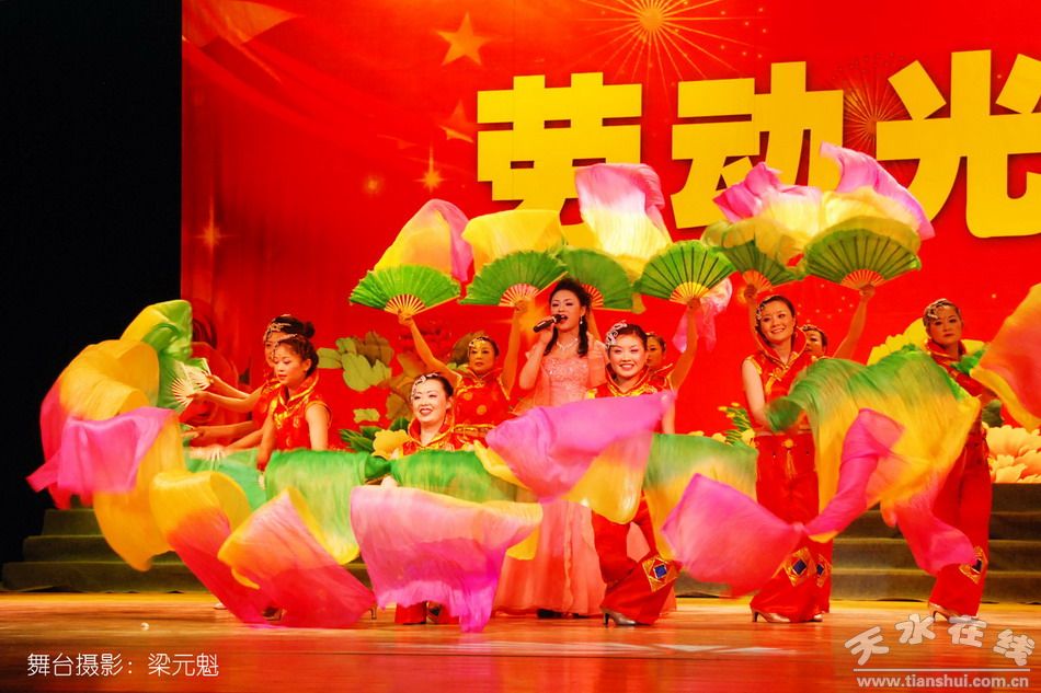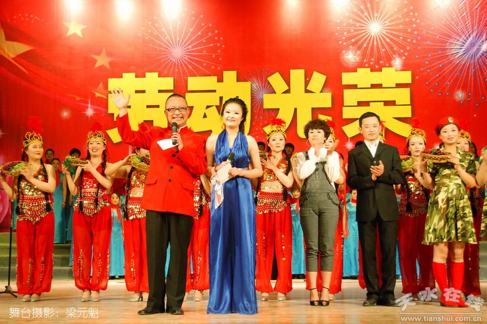 天水在線報(bào)道 4月30日晚,天水市慶!拔逡弧濒叩谒膶寐毠の乃噮R演(第三場)演出在秦州劇院上演。(攝影:梁元魁)