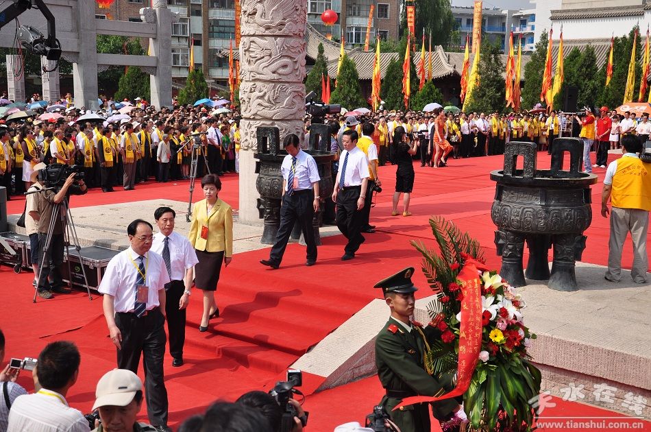 當天,香港、澳門代表隊,臺灣中華黃埔四海同心會,新西蘭、阿聯(lián)酋、伊朗、俄羅斯、日本、馬來西亞、韓國等國家華人華僑代表隊,關中—天水經(jīng)濟區(qū)六市一區(qū)等各界代表約5000人參加了祭祀活動,在古樂聲中歌頌伏羲的豐功偉績,表達全球華人對伏羲的景仰之情。