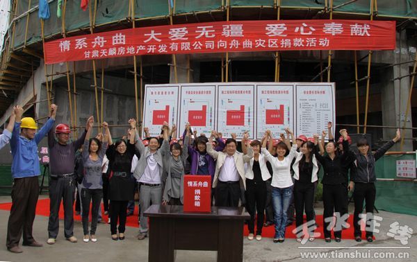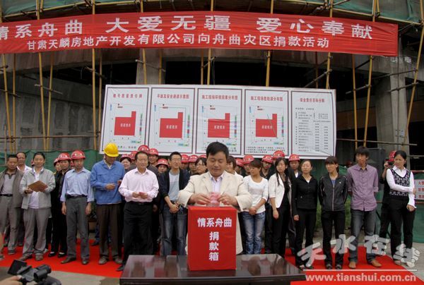 8月23日上午,甘肅天麟房地產(chǎn)開發(fā)有限公司全體員工向舟曲捐款35150元,藏族歌手云丹久美現(xiàn)場(chǎng)獻(xiàn)唱。