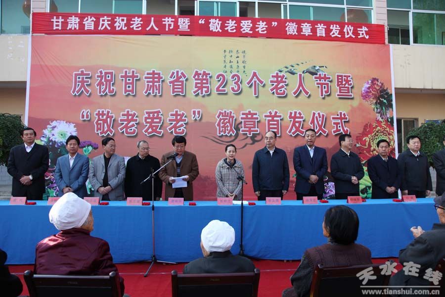 九九重陽(yáng)節(jié),濃濃敬老情。我國(guó)傳統(tǒng)的敬老節(jié)日——“九九”重陽(yáng)節(jié)即將來(lái)臨,10月15日上午,省政府在天水市舉行慶祝老人節(jié)活動(dòng)和“敬老愛(ài)老”徽章首發(fā)儀式。副省長(zhǎng)、省老齡工作委員會(huì)常務(wù)副主任張曉蘭,省民政廳廳長(zhǎng)、省老齡工作委員會(huì)副主任田寶中,天水市領(lǐng)導(dǎo)李文卿、韓岱成、楊繼軍、張明泰、朱政英、趙衛(wèi)東、雷鳴、白朝德、市長(zhǎng)助理安永出席發(fā)放儀式。