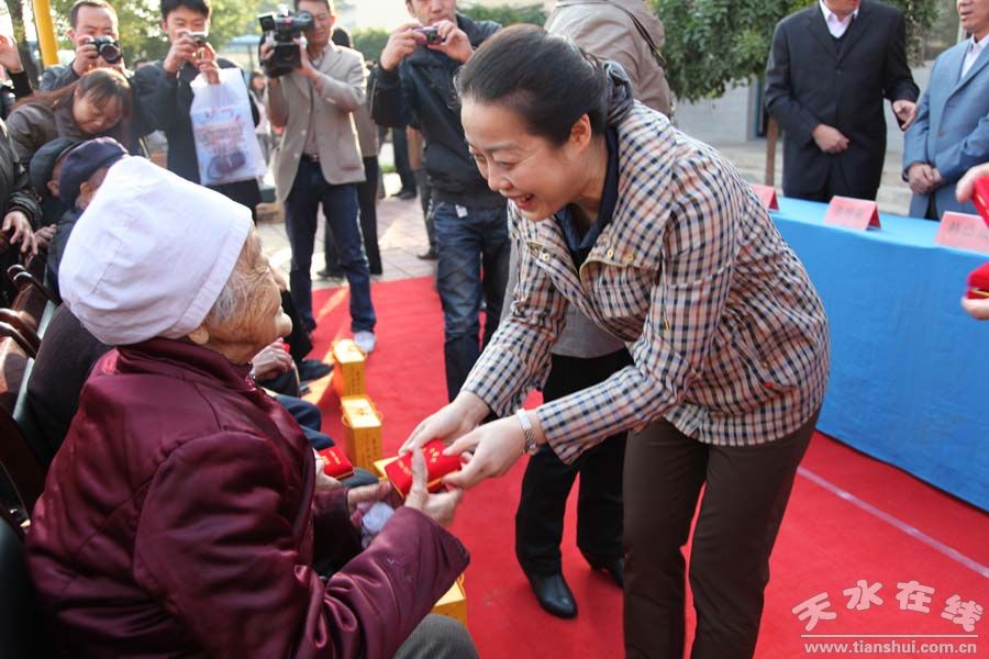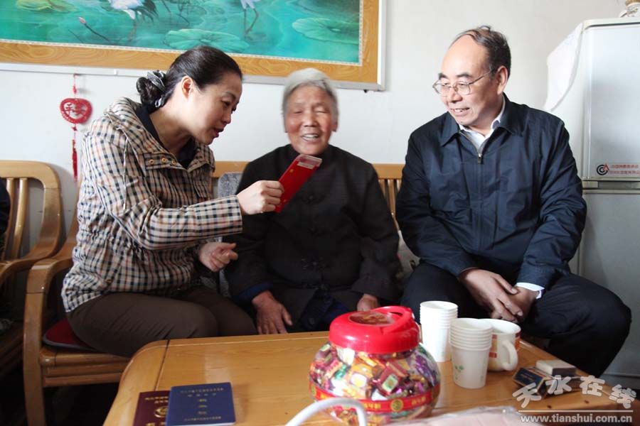發(fā)放儀式結(jié)束后,張曉蘭還看望慰問(wèn)了天水市部分百歲老人,給他們送去了節(jié)日的問(wèn)候和良好的祝愿。