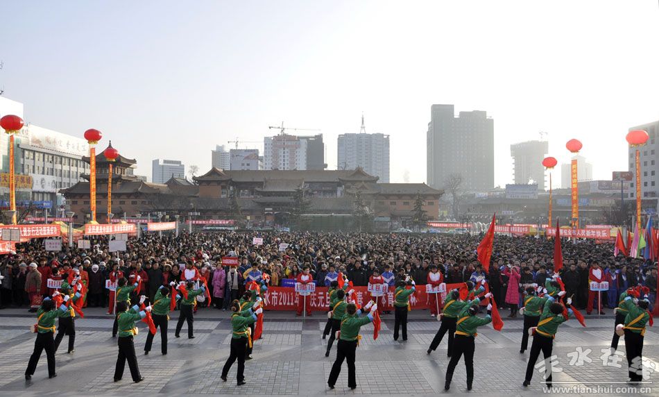 12月30日,由天水市體育局主辦,共青團(tuán)天水市委、天水市教育局、天水市總工會(huì)、天水市婦聯(lián)、天水市公安局、天水市衛(wèi)生局協(xié)辦的2011年慶元旦、迎新春“體育彩票杯”環(huán)天水湖公路越野賽暨萬(wàn)人健步行活動(dòng)啟動(dòng)儀式在天水市龍城廣場(chǎng)舉行,這標(biāo)志著我市2011年全民健身活動(dòng)將全面啟動(dòng)。