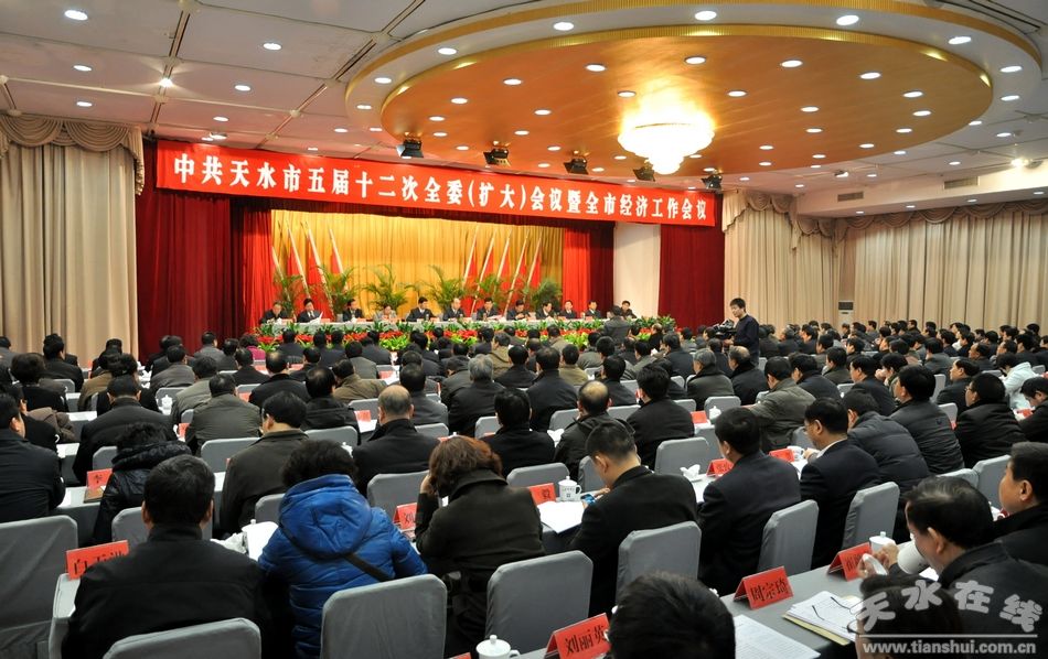 12月30日上午,中共天水市委五屆十二次全委(擴(kuò)大)會議暨全市經(jīng)濟(jì)工作會議在天水迎賓館召開。會議傳達(dá)學(xué)習(xí)了全省經(jīng)濟(jì)工作會議精神,全面總結(jié)了今年及“十一五”時期我市經(jīng)濟(jì)社會發(fā)展取得的成就,深入分析了當(dāng)前的經(jīng)濟(jì)形勢,明確提出了全市明年經(jīng)濟(jì)工作的總體要求和重點任務(wù)。