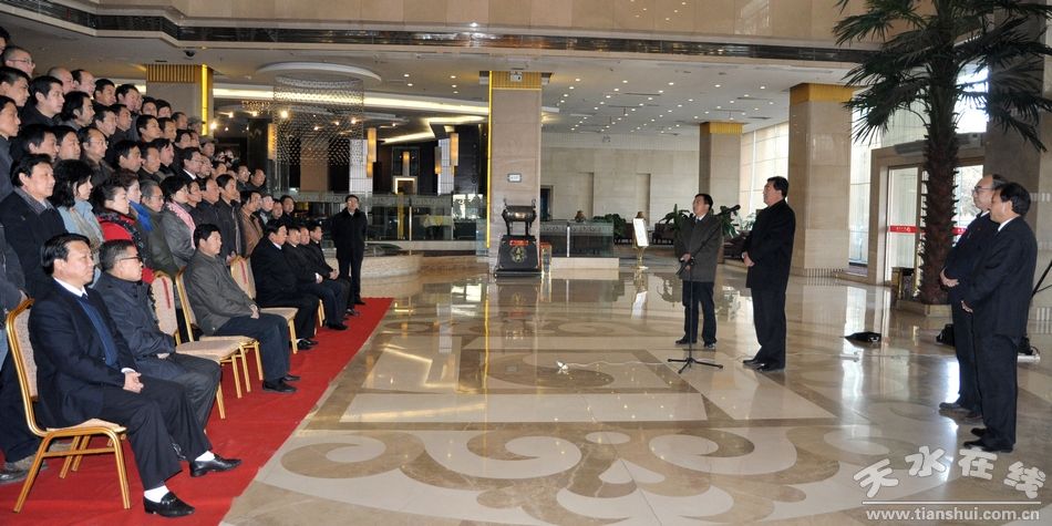 12月30日下午,市委書記、市人大常委會主任張景輝,市委副書記、市長李文卿,市政協(xié)主席宋敬國,市委副書記張應華,市委常委、宣傳部長王光慶,市委常委、副市長郭奇若,市委常委、組織部長楊繼軍,市委常委、秘書長蔣曉強,市人大常委會副主任任伯年,市政協(xié)副主席王鳳保,市長助理安永,市政府黨組成員、市政府辦公室黨組書記王子生在天水賓館接見天水市文藝界各協(xié)會領導班子。