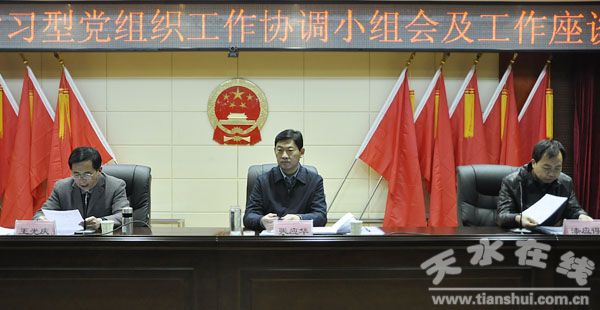 會議傳達學習了全省會議精神,辦公室匯報了開展的工作,四個部門的領(lǐng)導分別代表縣區(qū)部門作了發(fā)言,會上還下發(fā)了《2011年全市建設學習型黨組織工作要點(討論稿)》和《天水市建設學習型黨組織考核辦法(討論稿)》。