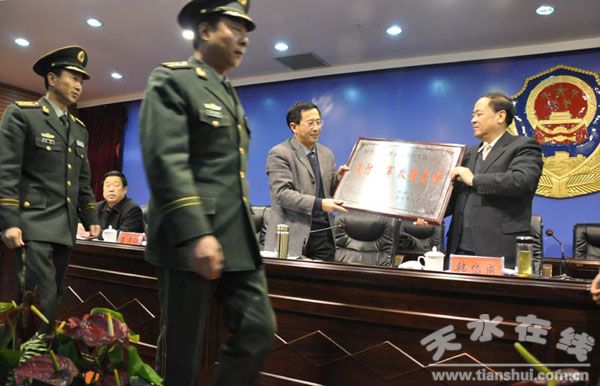 (韓岱成、王光慶為天水市公安消防支隊(duì)授牌 )