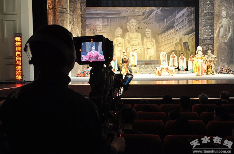 當(dāng)天下午,剛剛參加完國家5A級風(fēng)景名勝區(qū)麥積山景區(qū)旅游推介會暨《麥積圣歌》赴京演出新聞發(fā)布會的記者,也沉醉在《麥積圣歌》波瀾起伏,凄婉動人的故事之中。曾經(jīng)在去年伏羲文化旅游節(jié)期間來天水采訪過的中央人民廣播電臺《國際在線》的記者苗雨說,天水是一座非常美麗的城市,麥積山石窟更是文化藝術(shù)底蘊(yùn)深厚,自然風(fēng)光美麗動人。她認(rèn)為天水市委、市政府通過打造《麥積悲歌》來宣傳推介天水形象的創(chuàng)意很好,她希望能借助《麥積圣歌》赴京演出的機(jī)會繼續(xù)加大宣傳力度,讓國內(nèi)外更多的人到天水旅游。國務(wù)院新聞辦中國網(wǎng)《文化中國》的兩名記者演出一開始就架起攝像機(jī),全程錄制《麥積圣歌》演出視頻。