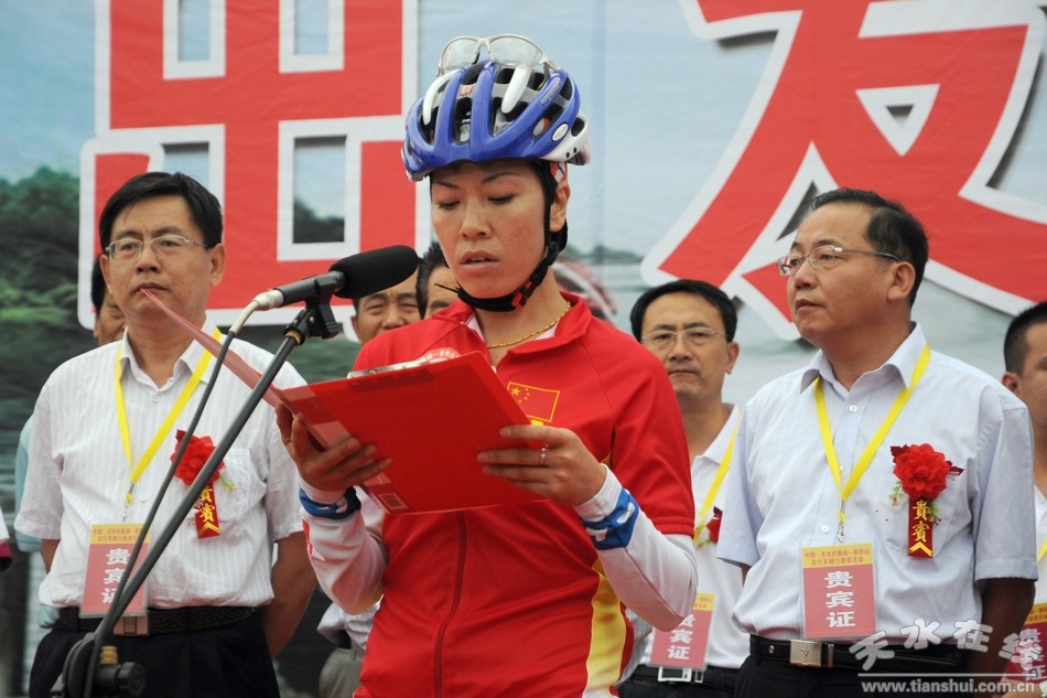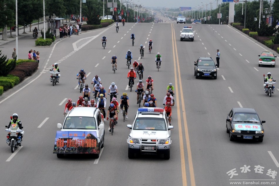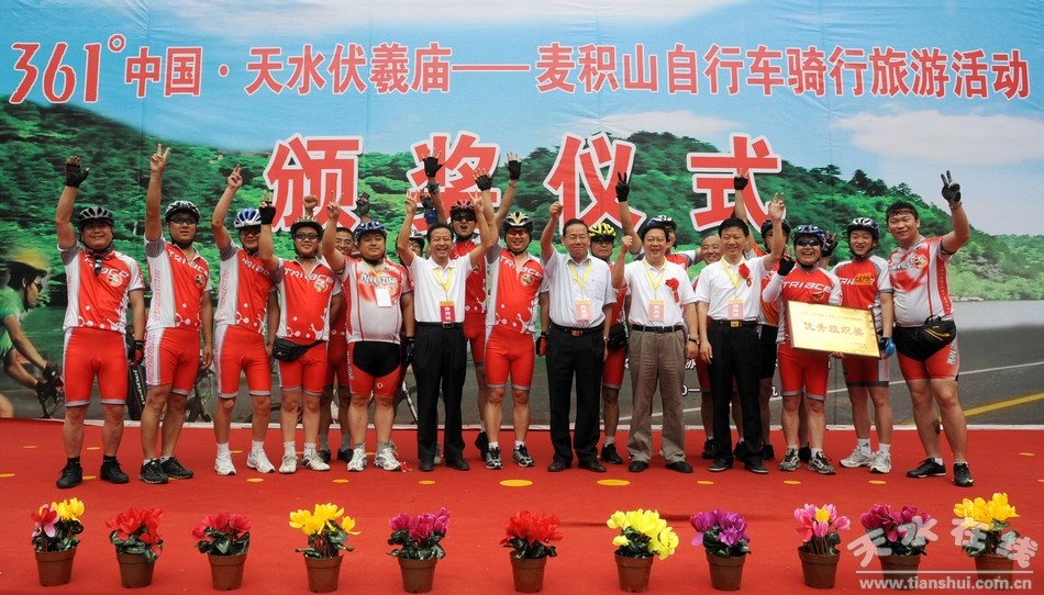 6月19日,正值2011(辛卯)年甘肅省公祭中華人文始祖伏羲大典暨第二十二屆中國西部商品交易會即將隆重舉行之際。由甘肅省體育局、甘肅省體育總會,天水市人民政府主辦,甘肅省自行車管理中心、甘肅省社會體育管理中心、甘肅省自行車協(xié)會、天水市體育局承辦的中國•天水伏羲廟——麥積山自行車騎行旅游活動,在伏羲廟東牌坊、麥積山舉行了出發(fā)儀式和頒獎儀式。經(jīng)過近2小時46公里的騎行,運動員們順利抵達一峰獨秀的麥積山下,參加了頒獎儀式。