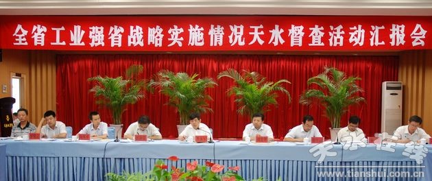 7月19日至21日,省委、省政府“工業(yè)強(qiáng)省”戰(zhàn)略實(shí)施情況督查組來到我市,重點(diǎn)就我市貫徹落實(shí)“工業(yè)強(qiáng)省”戰(zhàn)略所取得的成績(jī)、經(jīng)驗(yàn),存在問題進(jìn)行全面督查。省政協(xié)副主席、督查組組長(zhǎng)李永軍在天水匯報(bào)會(huì)上指出,要進(jìn)一步深化對(duì)“工業(yè)強(qiáng)省”戰(zhàn)略重要性和必要性的認(rèn)識(shí),立足天水工業(yè)經(jīng)濟(jì)發(fā)展的實(shí)際,不斷提高企業(yè)自主創(chuàng)新能力,重視工業(yè)設(shè)計(jì)隊(duì)伍的建設(shè),推動(dòng)天水工業(yè)經(jīng)濟(jì)快速發(fā)展。