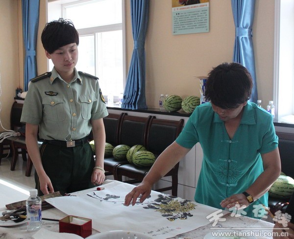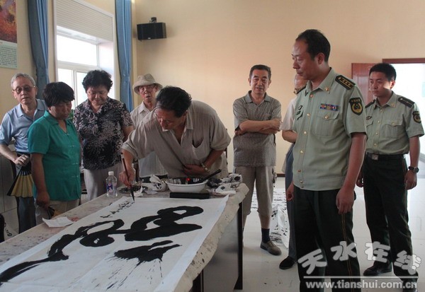 文化擁軍到部隊,丹青妙手繪衷情。八一建軍節(jié)來臨之際,7月26日下午,天水市民政局、天水市老年書畫研究會的書畫家一行20多人來到天水消防支隊特勤中隊為基層一線官兵獻(xiàn)藝慰問,書畫家們用優(yōu)雅的書畫作品,為消防官兵送上了一席豐盛的精神文化大餐,受到了全體官兵的熱烈歡迎,促進(jìn)了警民共建活動的深入開展。