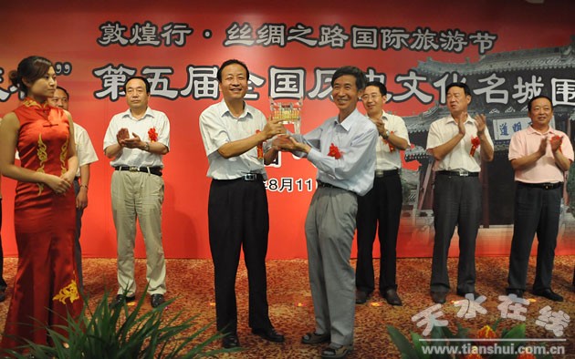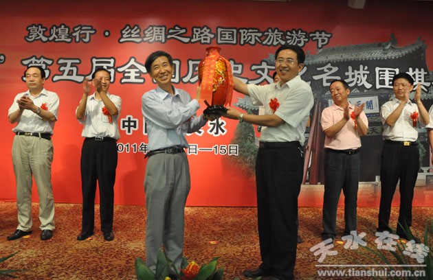 (中國(guó)圍棋協(xié)會(huì)主席王汝南向天水市人民政府贈(zèng)送紀(jì)念品)