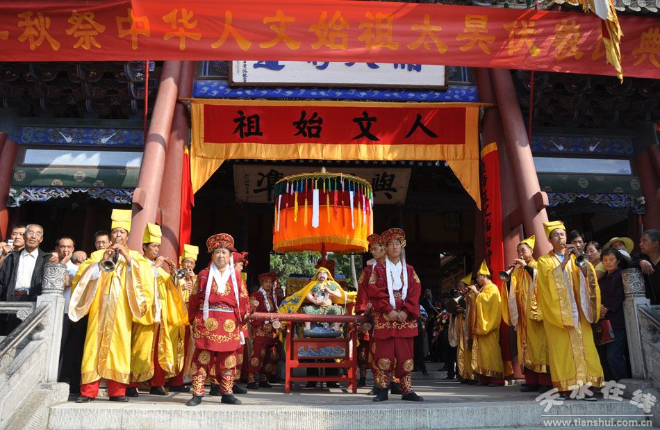 為進(jìn)一步傳承和保護(hù)首批國家級非物質(zhì)文化遺產(chǎn)保護(hù)項(xiàng)目——“太昊伏羲祭典”禮儀,贊頌始祖精神,弘揚(yáng)伏羲文化,打造祭祖圣地,定于辛卯年七月十八日至二十日(公歷2011年8月17日至19日,農(nóng)歷七月十九日為伏羲逝世紀(jì)念日),在天水伏羲廟隆重舉行“辛卯(2011)年秋祭中華人文始祖太昊伏羲氏典禮”活動(dòng),特制定如下方案: