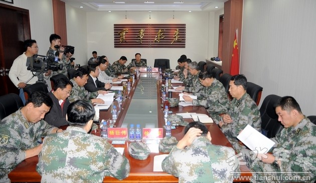 在隨后召開的匯報會上,陳知庶聽取了市委常委、天水軍分區(qū)司令員鄭黎就今年以來工作開展和落實、訓(xùn)練基地建設(shè)、基地現(xiàn)場觀摩活動籌備以及軍分區(qū)遷建等四個方面的情況的匯報,并對工作中存在的困難和問題進(jìn)行了協(xié)調(diào)解決。陳知庶說,天水軍分區(qū)和天水預(yù)備役旅積極貫徹落實省軍區(qū)黨委全體擴(kuò)大會議的精神,認(rèn)真分析各自工作中存在的不足,堅持以科學(xué)發(fā)展觀為指導(dǎo),圍繞提高應(yīng)急能力和轉(zhuǎn)變戰(zhàn)斗力生成模式這條主線,突出抓好黨委班子、干部隊伍建設(shè)、基層建設(shè)和安全穩(wěn)定等工作,在當(dāng)代軍人核心價值觀培育、學(xué)習(xí)型黨委機(jī)關(guān)和創(chuàng)先爭優(yōu)活動開展、軍事訓(xùn)練工作落實、基層人武部全面建設(shè)達(dá)標(biāo)等方面取得了顯著成效。