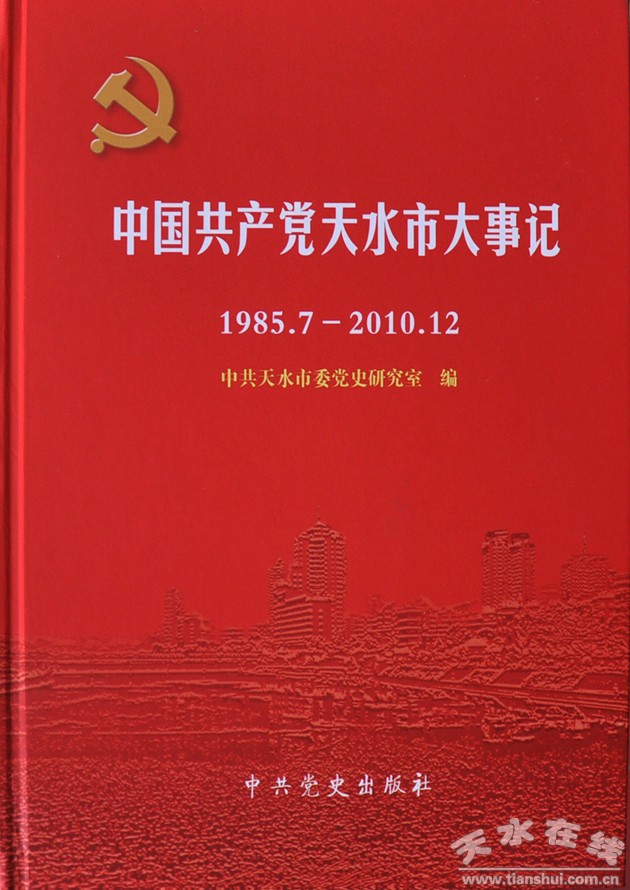 為了系統(tǒng)、全面、真實(shí)地展示天水市建市25周年的發(fā)展變化,總結(jié)經(jīng)驗(yàn)、吸取教訓(xùn),提供借鑒和啟示,中共天水市委黨史研究室組織編輯的《中國(guó)共產(chǎn)黨天水市大事記》(1985.7—2010.12),于近日由中共黨史出版社公開出版。