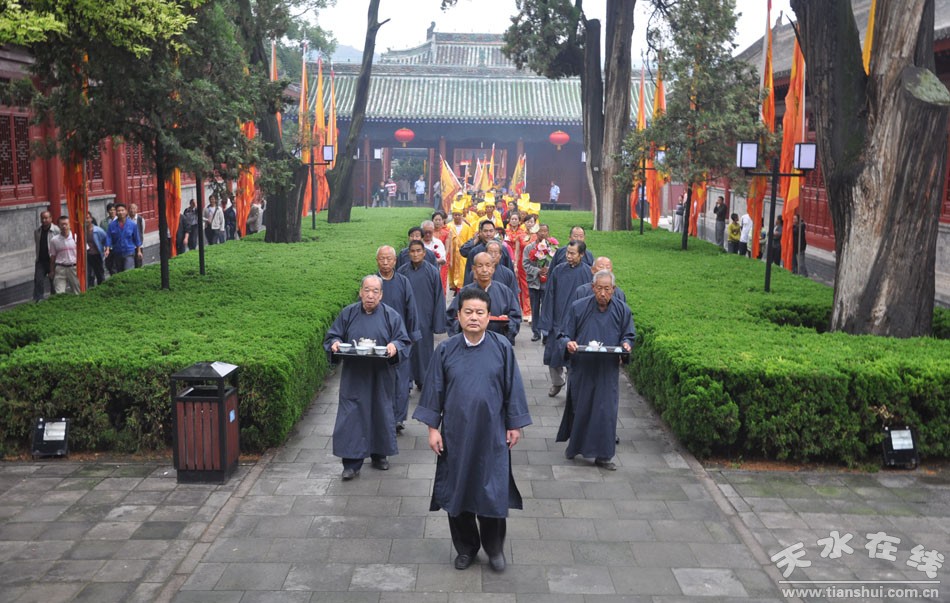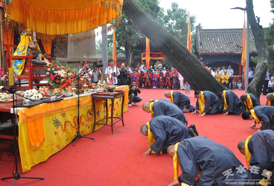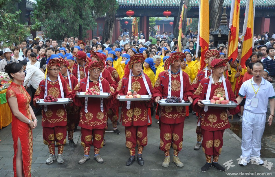 秋祭典禮活動從農(nóng)歷七月十八日開始。當天清晨,兩百多名身著統(tǒng)一服飾的儀仗隊伍在嗩吶、鑼鼓伴奏之下浩浩蕩蕩的沿伏羲廟及伏羲路步行街舉行了迎神、迎圣水、出榜文儀式。農(nóng)歷七月十九日上午九時五十分,主持人宣布祭祀典禮開始。三天的秋祭活動中,同時舉行戲劇公演、嗩吶演奏、舞獅及武術表演,可謂活動內容豐富多彩,極具觀賞性。