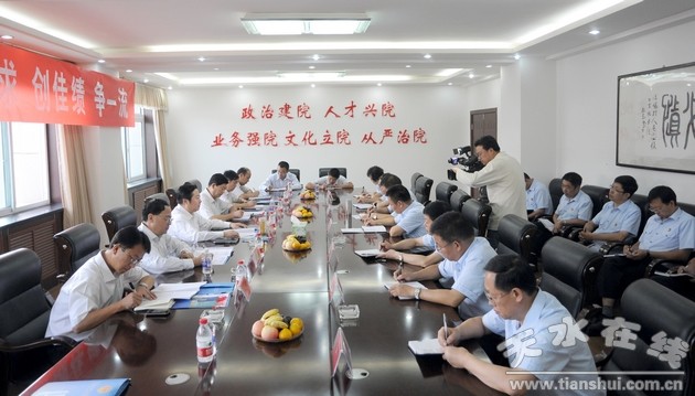 馬世忠一行詳細查看了公檢法機關(guān)軟硬件建設(shè)情況,了解了便民服務(wù)、業(yè)務(wù)流程、隊伍建設(shè)以及干警工作、生活等方面的情況。在市中級法院,參觀了以“歷史傳承、司法情懷、廉政之聲、高尚情趣”為主題的文化長廊,對近年來市中級法院狠抓執(zhí)法辦案、深入化解涉訴矛盾以及堅持文化立院、提升隊伍素質(zhì)等方面的工作給予了充分肯定。馬世忠指出,市中級法院以法院文化建設(shè)為支撐,在隊伍建設(shè)、審判執(zhí)行、涉訴信訪、司法公開、文化建設(shè)、精細化管理等方面取得了顯著成效,今后要繼續(xù)發(fā)揚優(yōu)良的作風,從細節(jié)抓起,從一言一行抓起,內(nèi)強素質(zhì),外塑形象,為全市經(jīng)濟社會跨越式科學發(fā)展提供強有力的司法保障和服務(wù)。