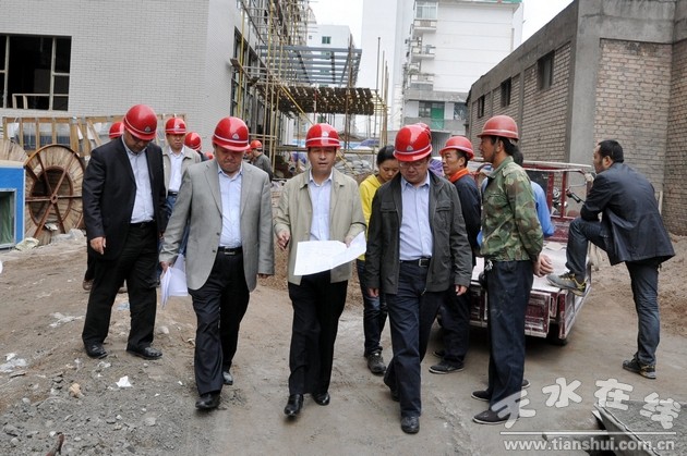 (現(xiàn)場(chǎng)察看市中醫(yī)醫(yī)院住院大樓建設(shè)進(jìn)展情況)