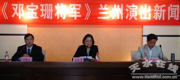 9月15日下午,天水市在蘭州舉行大型話劇《鄧寶珊將軍》蘭州演出新聞發(fā)布會(huì)!多噷毶簩④姟穼⒂9月17日晚在蘭州市金城大劇院以“紀(jì)念中國(guó)共產(chǎn)黨成立90周年、辛亥革命100周年獻(xiàn)禮劇目”進(jìn)行展演;18日晚,大型話劇《鄧寶珊將軍》將代表天水市參加甘肅省第三屆戲劇紅梅獎(jiǎng)大賽,屆時(shí)將面向全省戲劇界專家、評(píng)委和14個(gè)市州參賽代表團(tuán)進(jìn)行交流比賽展演。