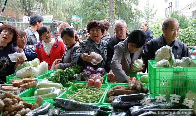 (市民在菜籃子流動售菜車前選購蔬菜)