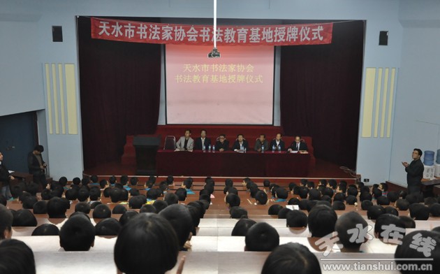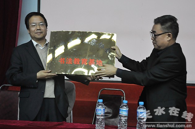10月20日下午,天水市書(shū)法家協(xié)會(huì)書(shū)法教育基地授牌儀式在市逸夫中學(xué)舉行,標(biāo)志著我市首個(gè)書(shū)法教育基地正式落戶(hù)。
