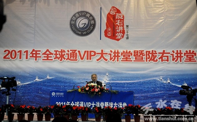 10月29日上午,由省委宣傳部、天水市委主辦,市委宣傳部、市教育局、市文化文物出版局、市社科聯(lián)、天水日報社、天水電視臺、天水圖書館、天水移動通信分公司、天水文學藝術(shù)界聯(lián)合會承辦的全球通VIP大講堂暨隴右講堂第二十七講在天水師范學院禮堂舉行。