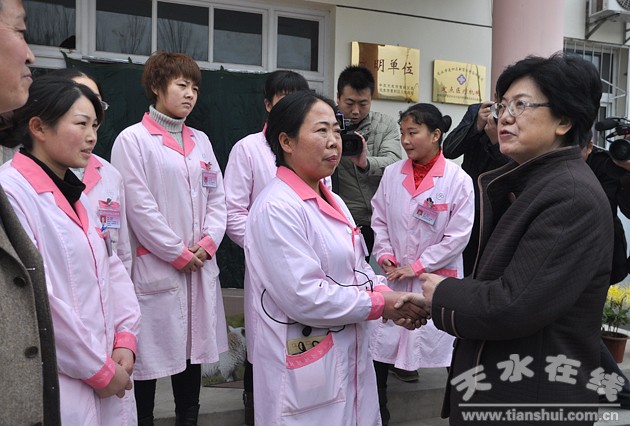 當天下午,李斌一行在省政協(xié)副主席張世珍,市委書記馬世忠,省人口委主任蘇君等領導的陪同下,先后來到麥積區(qū)甘泉鎮(zhèn)計生服務所和麥積鎮(zhèn)后川村開展實地考察調研。在甘泉鎮(zhèn)計生服務所,李斌察看了計生所基礎設施建設情況,仔細詢問了當?shù)氐娜丝诜植、性別比例、生育率及流動人口管理服務工作情況。親切慰問了該所婦產(chǎn)科副主任醫(yī)師、全國人口計生系統(tǒng)新時期最可愛的人余金環(huán),感謝余金環(huán)多年來在基層計生服務工作上做出的突出貢獻,并勉勵她在今后的工作中繼續(xù)堅持以人為本,更加細致入微地開展計生服務,努力為新時期人口計生工作做出新的更大的成績。