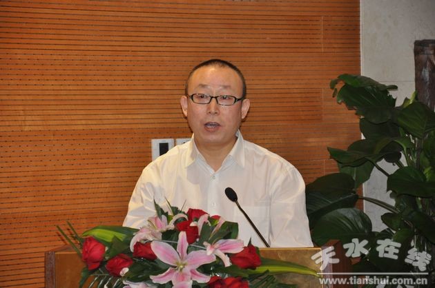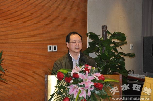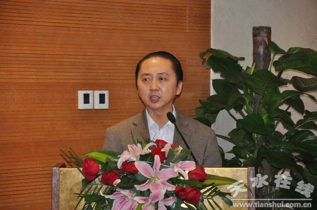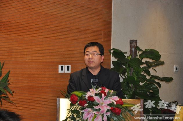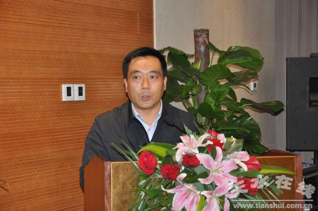 天水籍務(wù)工青年集中的西安企業(yè)代表,蘭環(huán)集團(tuán)董事長李天舉發(fā)言