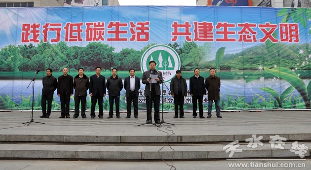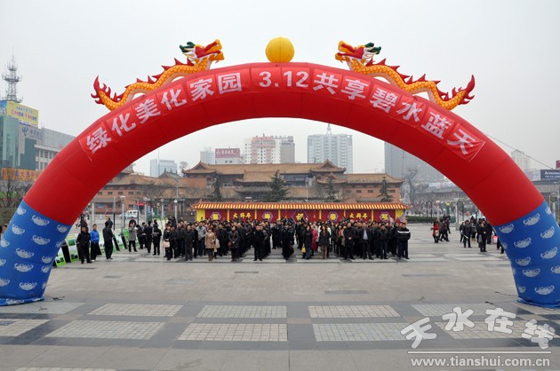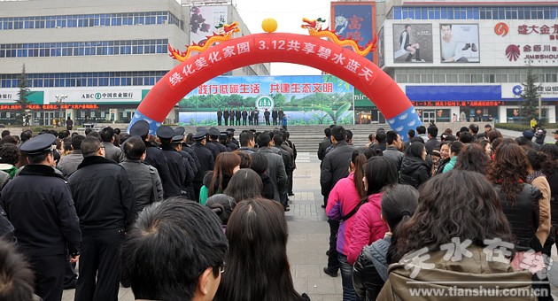 2012年3月12日上午,在第34個全民義務植樹節(jié)來臨之際,天水市綠化委員會、市林業(yè)局與秦州區(qū)綠化委員會、區(qū)林業(yè)局在龍城廣場聯(lián)合舉辦大型宣傳咨詢活動,旨在發(fā)動社會各屆積極參加義務植樹,踐行低碳生活,共建生態(tài)文明,掀起植綠、愛綠、護綠熱潮,推動全民義務植樹活動深入開展,為再造山川秀美新天水貢獻力量。