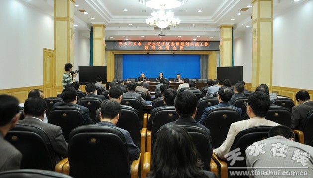 4月23日,我市召開關中—天水經(jīng)濟區(qū)發(fā)展規(guī)劃實施工作領導小組會議,傳達貫徹了省委副書記、省長劉偉平主持的省長辦公會精神,安排部署我市《關中—天水經(jīng)濟區(qū)發(fā)展規(guī)劃》實施重點工作,市委常委、常務副市長郭奇若出席會議并講話,市直32個領導小組成員單位負責人參加了會議。