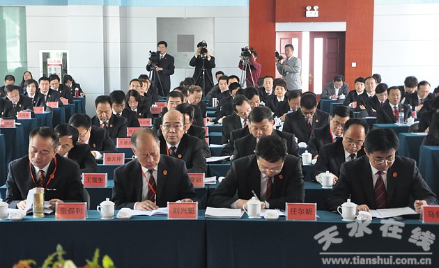 致辭中,馬世忠首先對(duì)此次會(huì)議的召開(kāi)表示熱烈祝賀,對(duì)參加會(huì)議的各位領(lǐng)導(dǎo)和同志們表示熱烈歡迎。在簡(jiǎn)單介紹天水市情后,馬世忠說(shuō),近年來(lái),在省委、省政府的堅(jiān)強(qiáng)領(lǐng)導(dǎo)下,在省高級(jí)法院的有力指導(dǎo)下,全市法院工作始終堅(jiān)持“黨的事業(yè)至上、人民利益至上、憲法法律至上”的指導(dǎo)思想,深入貫徹落實(shí)科學(xué)發(fā)展觀,努力踐行“為大局服務(wù)、為人民司法”的工作主題和“公正、廉潔、為民”的司法核心價(jià)值觀,大力實(shí)施“政治建院、人才興院、業(yè)務(wù)強(qiáng)院、文化立院、從嚴(yán)治院”工作方針,認(rèn)真履行憲法和法律賦予的職責(zé),充分發(fā)揮審判職能作用,全力維護(hù)公平正義,為促進(jìn)全市經(jīng)濟(jì)跨越科學(xué)發(fā)展、民族共同繁榮發(fā)展、社會(huì)和諧穩(wěn)定發(fā)展提供了堅(jiān)強(qiáng)有力的司法保障。我市連續(xù)三屆十二年榮獲“全國(guó)社會(huì)治安優(yōu)秀地市”榮譽(yù)稱(chēng)號(hào)。市中級(jí)法院先后被最高人民法院命名為“全國(guó)法院文化建設(shè)示范單位”、“全國(guó)法院司法公開(kāi)示范單位”,表彰為“全國(guó)法院黨建工作先進(jìn)集體”。