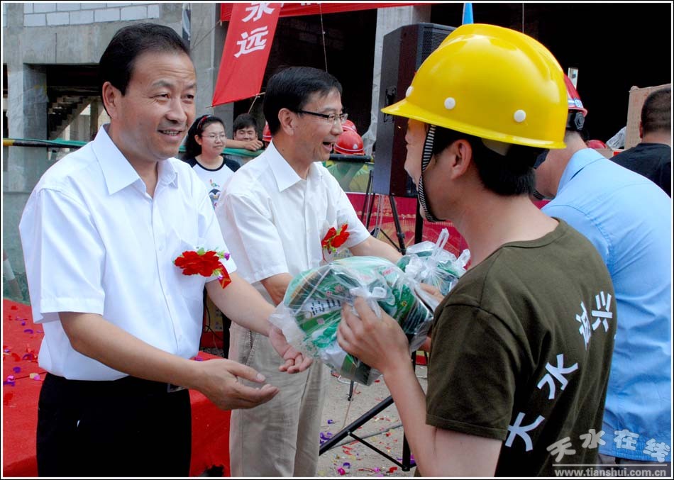 市委常委、常務副市長郭奇若,市人大常委會副主任黃孝榮出席活動儀式。活動儀式上,市領導為建筑工人贈送了冰糖和茶葉等慰問品。