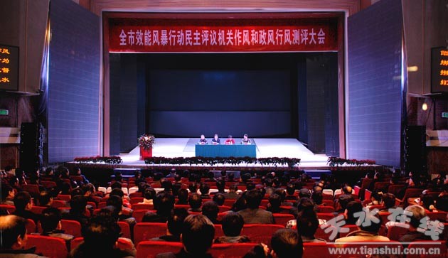 天水市效能風(fēng)暴行動民主評議機關(guān)作風(fēng)和政風(fēng)行風(fēng)測評大會召開