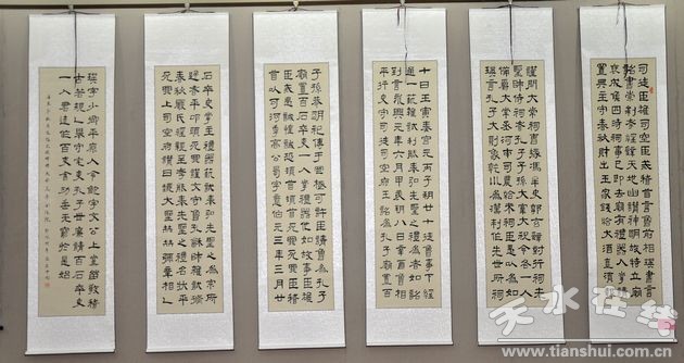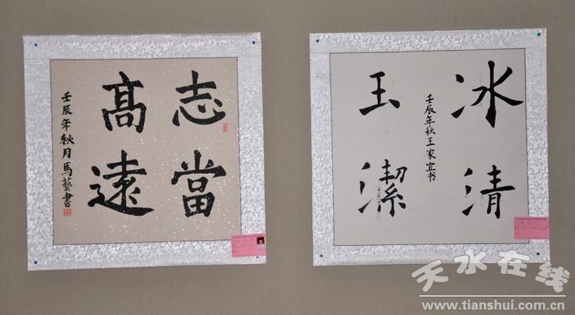 1月12日上午,由天水市教育局主辦的天水蘭亭書法院教學(xué)成果展在市書畫院開展。作品主要以楷書為主,兼行書、篆書、隸書及草書。展期6天,共展出作品二百余幅。