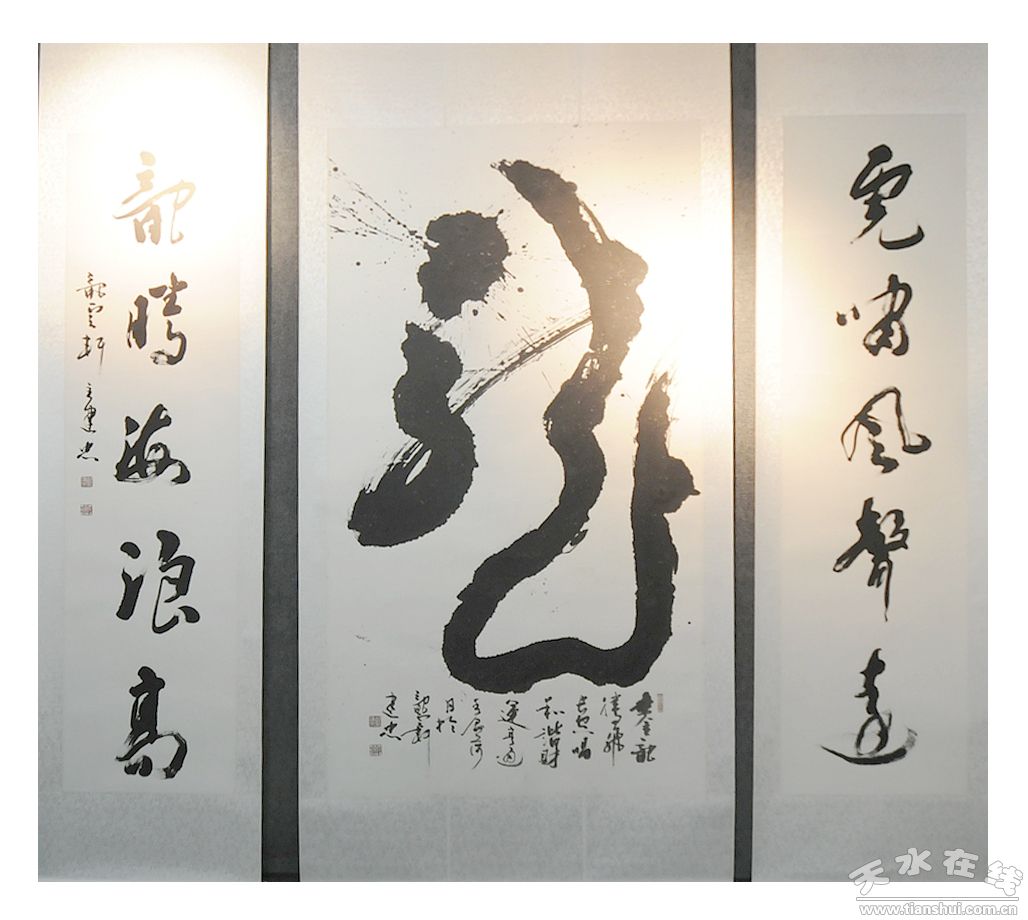 本次共展出書(shū)畫(huà)作品380副,38米長(zhǎng)卷杜甫秦州雜詩(shī)及18米“龍”字卷特別引人注目。