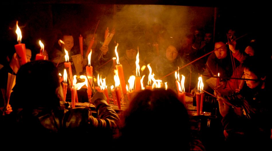 (圖為香客在秦州區(qū)張家溝土地廟敬香祈福)