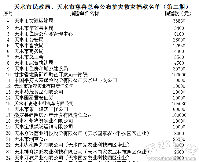 天水市民政局、慈善總會抗災(zāi)救災(zāi)捐款名單(第二期)