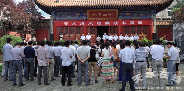 8月20日,天水“清風(fēng)頌”廉政主題書畫展在萬壽宮開展。市人大常委會主任柴金祥,市委副書記、市政協(xié)主席楊維俊,市委常委、市紀(jì)委書記李美華,市委常委、秦州區(qū)委書記張明泰,市委常委、宣傳部長彭鴻嘉,副市長霍衛(wèi)平出席開展儀式。