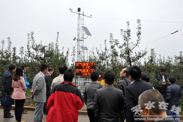 (在麥積區(qū)南山萬(wàn)畝花牛蘋(píng)果基地考察人工防霜實(shí)驗(yàn)基地)