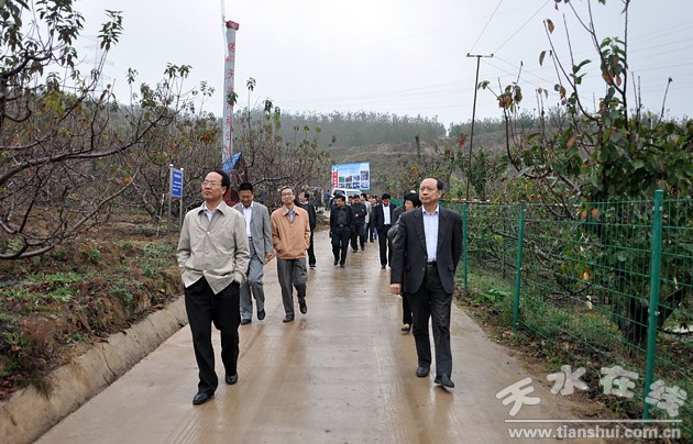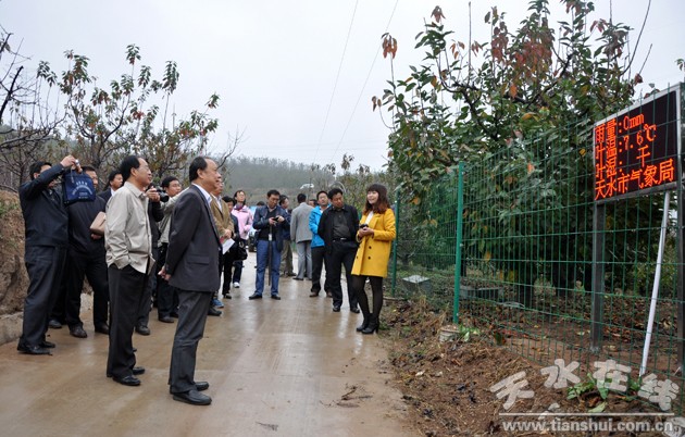 (在秦州區(qū)羅峪溝萬(wàn)畝大櫻桃示范園考察人工防霜實(shí)驗(yàn)基地)