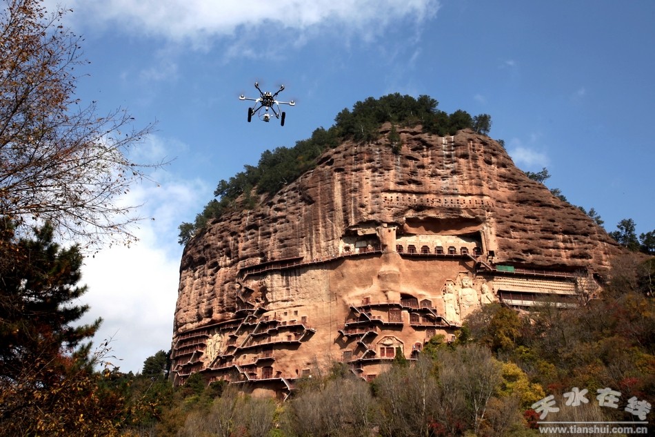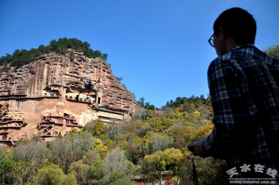 11月1日,中央電視臺(tái)5集大型高清電視紀(jì)錄片《麥積山石窟》攝制人員在利用飛行器進(jìn)行航拍。市委常委、宣傳部長(zhǎng)彭鴻嘉觀摩航拍活動(dòng),并慰問(wèn)了攝制組人員。