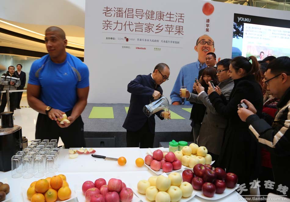 昨日,潘石屹發(fā)微博稱:“我動員所有朋友們?yōu)榧亦l(xiāng)天水賣蘋果!辈⒏缴狭撕团笥训暮险找约敖o朋友榨果汁的照片,記者看到,其中有林丹等不少明星大腕的身影。