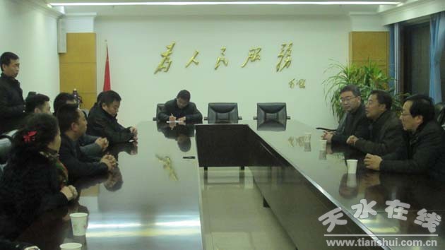 2013年12月31日晚11時,副市長徐慶宏帶領(lǐng)市政府副秘書長楊帆和市政府金融辦副主作趙劍孝前往人行、工行、建行、農(nóng)行、蘭州銀行天水分行、甘肅銀行天水支行等金融單位,看望慰問了堅守在年終決算崗位上的金融系統(tǒng)干部職工。