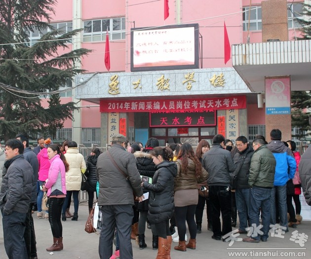 2月18日,天水市新聞采編人員崗位考試在天水市逸夫?qū)嶒炛袑W(xué)舉行,全市330名新聞采編人員參加了這次考試。省新聞出版廣電局巡視組、副市長張建杰一行巡視了考場。